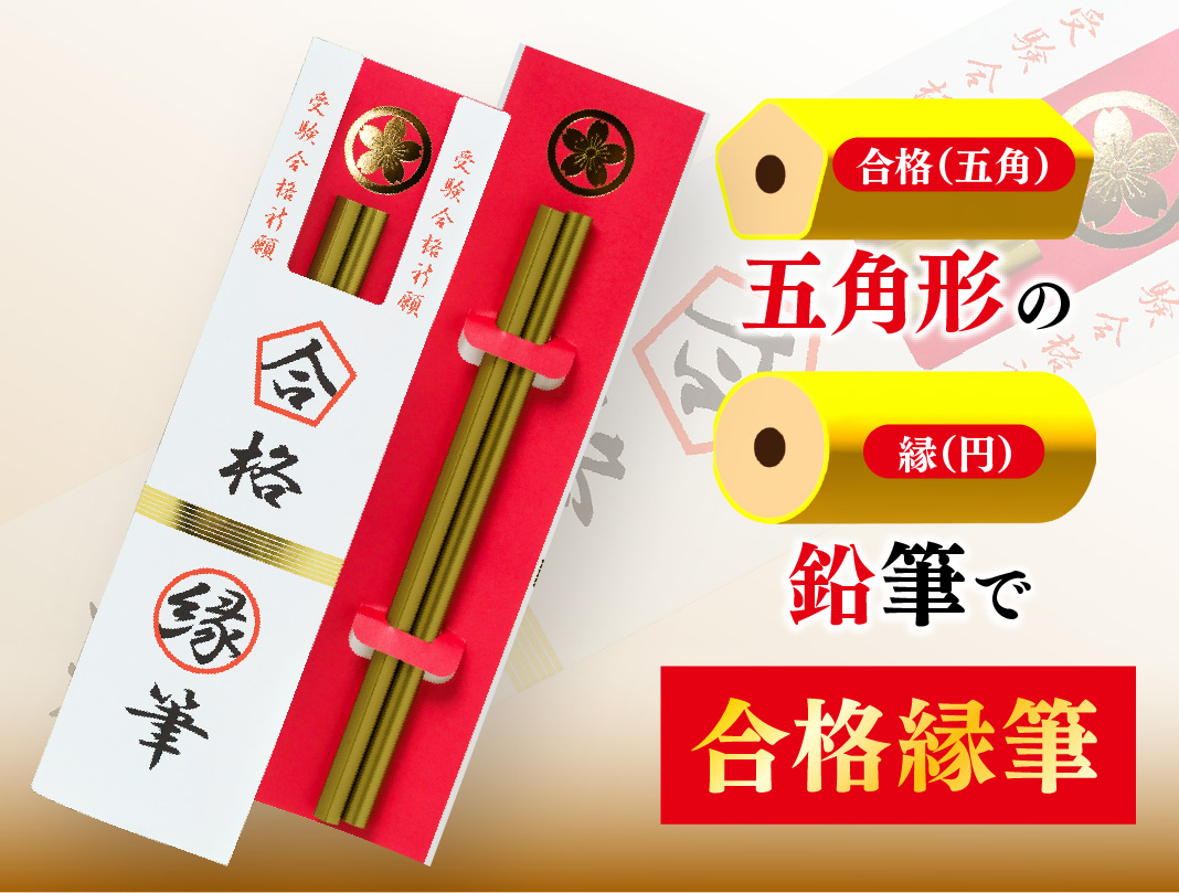 各種試験の合格への道を照らす「合格縁筆」五角形と円形の2本の鉛筆は、五角形に「合格」、円形に「ご縁」の願いが込められています。試験勉強に取り組む方への心強いエールとして、ぜひお贈りください。